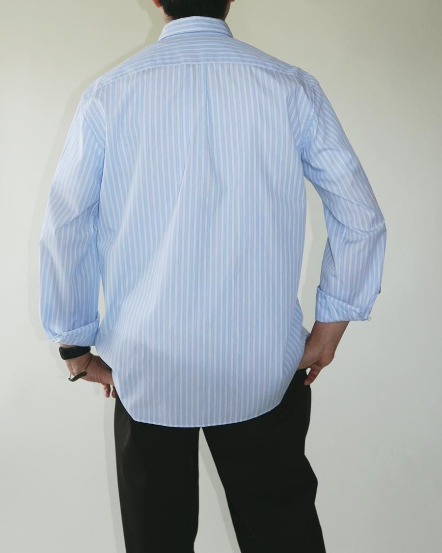 襟やカフスの芯は柔らかくし、一般的なドレスシャツより程よいゆとりをもたせたシルエット。