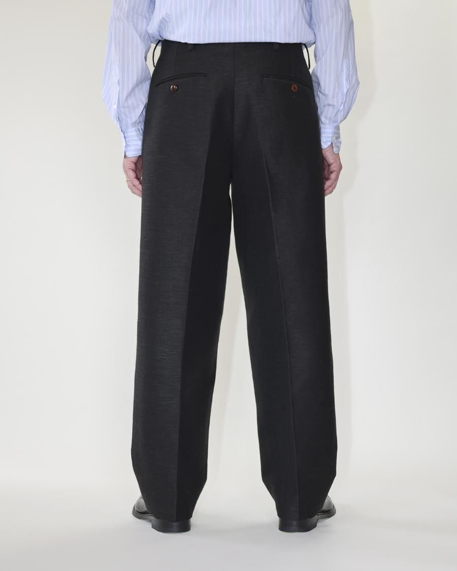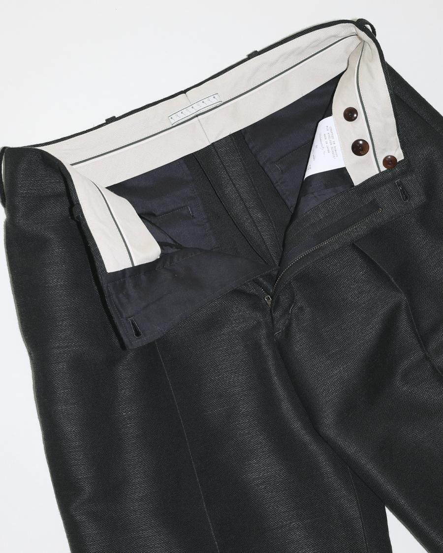 ウールとヘンプが合わさった、独特の光沢が美しいトラウザー。